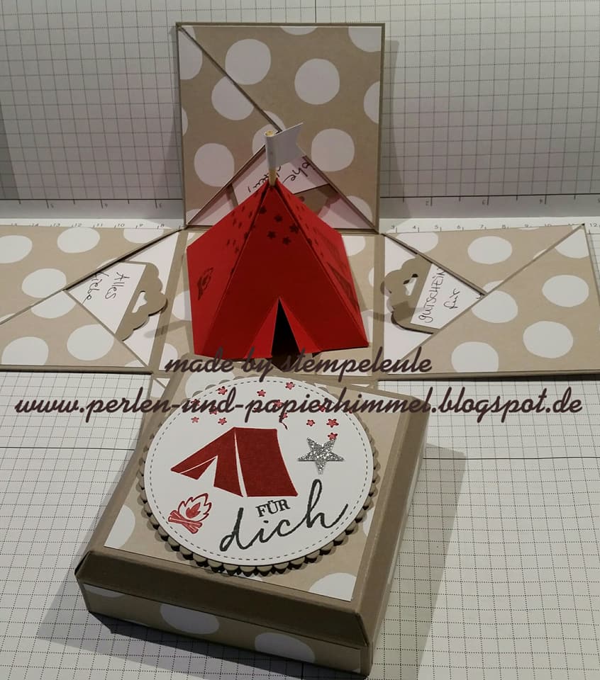 Allgemein Last Minute Weihnachtsgeschenk… 26. Dezember 2017 by Iris Philipps …für meinen Mann. Halb fertig war diese Explosionsbox schon etwas länger, habe sie dann ganz kurzfristig noch ausdekoriert. Es ist ein Gutschein für ein neues Zelt enthalten. von außen: von innen: teilen merken teilen drucken teilen Beitrags-Navigation Frohe Weihnachten !!Easel-Kalenderaufsteller