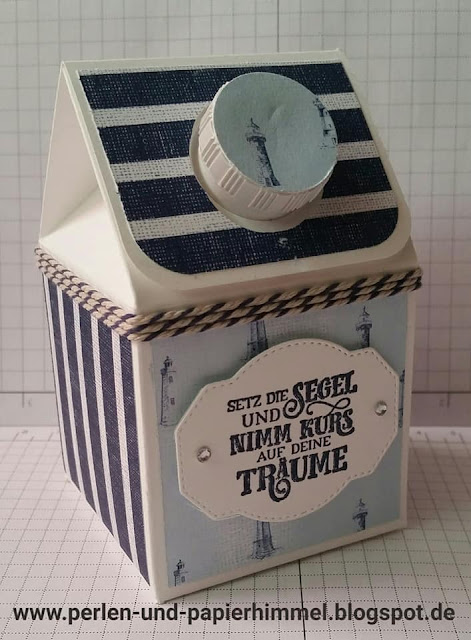 Und als zweites musste ich die Milchkartonverpackung (mit echtem Milchkarton-Schraubverschluss) von der Papiertante ausprobieren. Dies war ein wenig frickelig, aber ich finde mein Ergebnis ist toll geworden. Ideal, um eine Kleinigkeit darin zu verpacken und zu verschenken.