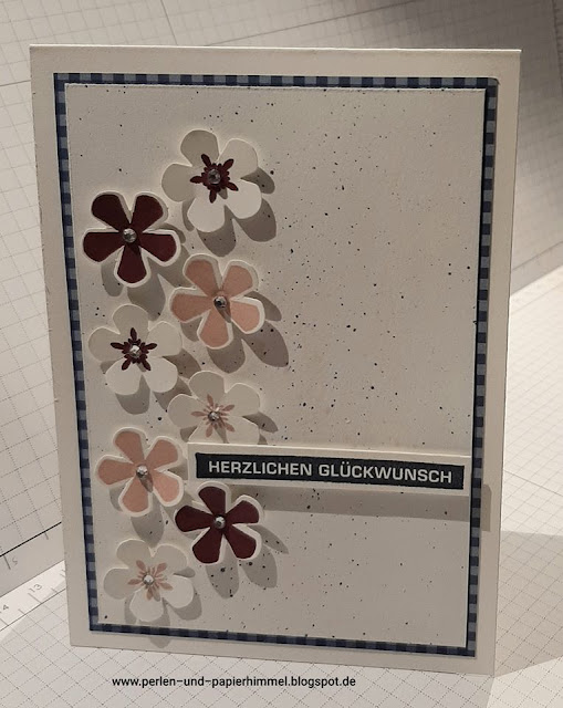 Ich habe die erste Matte aus dem marineblauen Designpapier gemacht, darauf ein Stück Flüsterweiß, welches ich mit marineblauen Sprenkeln dezent dekoriert habe.