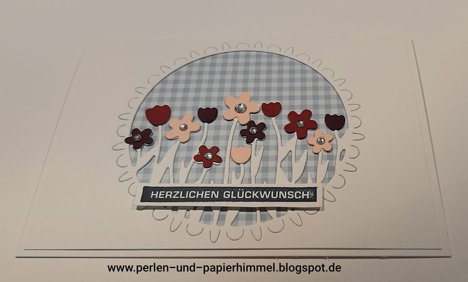 bei dieser Karte habe ich die neue Stanzform „Blumenwiese“ benutzt und ausgetestet.