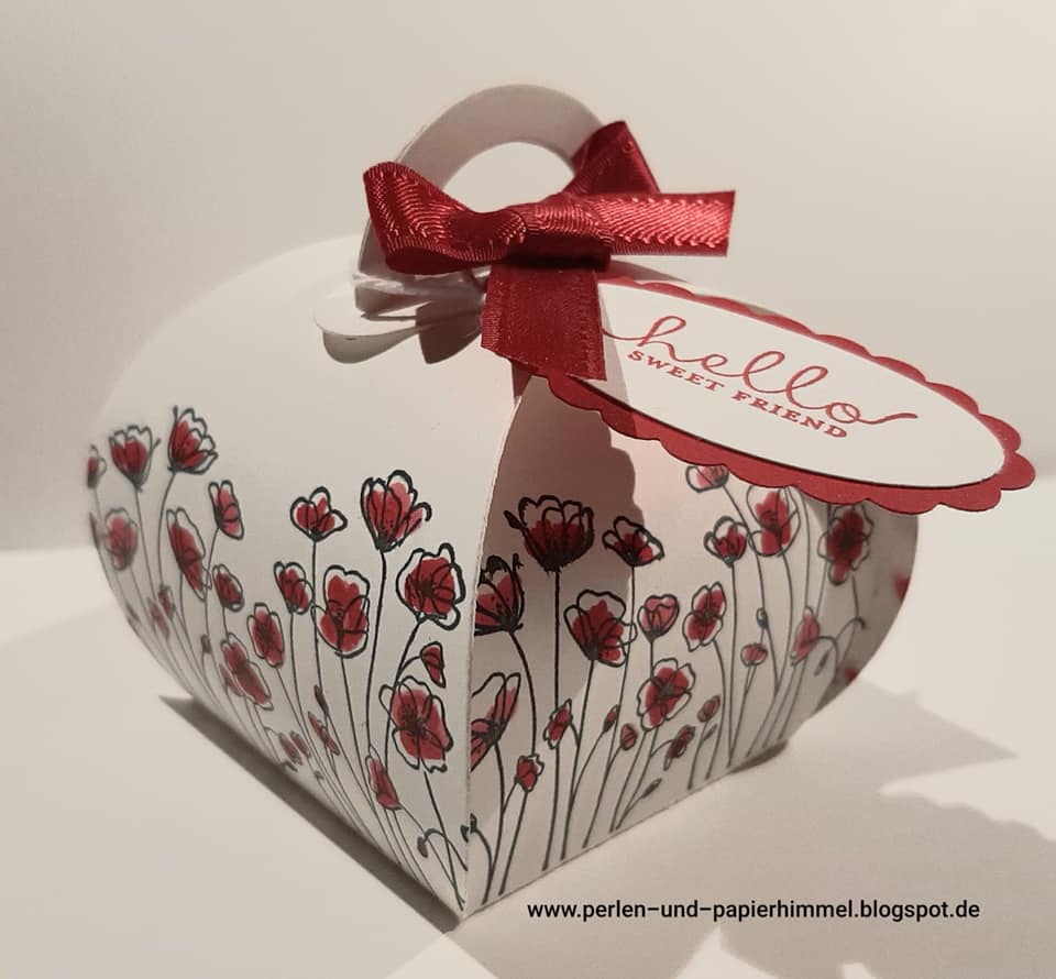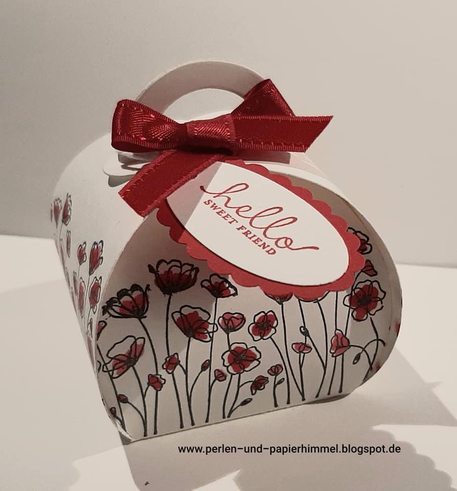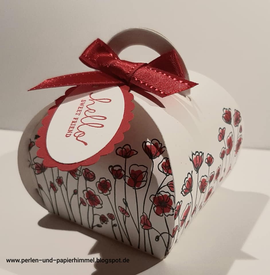 Ich habe heute für Euch die Zierschachtel mit dem Stempelset „Mohnblüten“ verziert und mit den Blends coloriert.