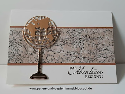 Ich habe mich dann doch für das Stempelset „Wunderbare Welt“ und die dazugehörigen Stanzformen entschieden und damit ein kleines Geschenkset bestehend aus einer Karte und einem kleinen Reisekoffer gewerkelt.