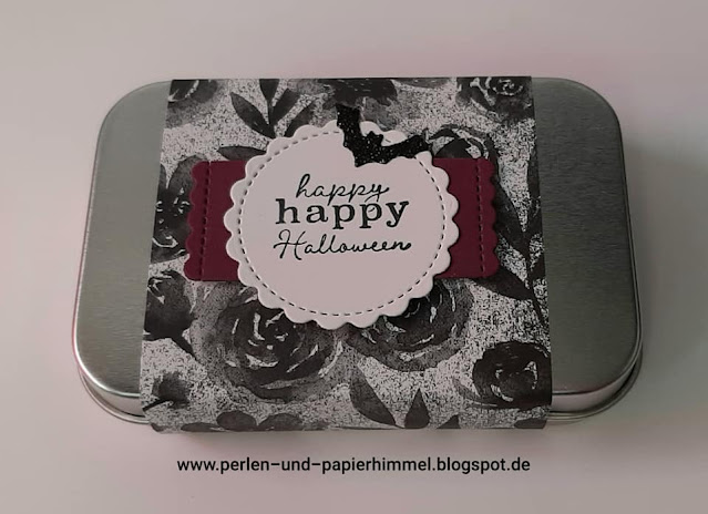 Heute habe ich mir mal unsere rechteckigen Blechdosen aus dem Minikatalog Herbst/Winter 2020 vorgenommen und diese halloweenmäßig verziert.