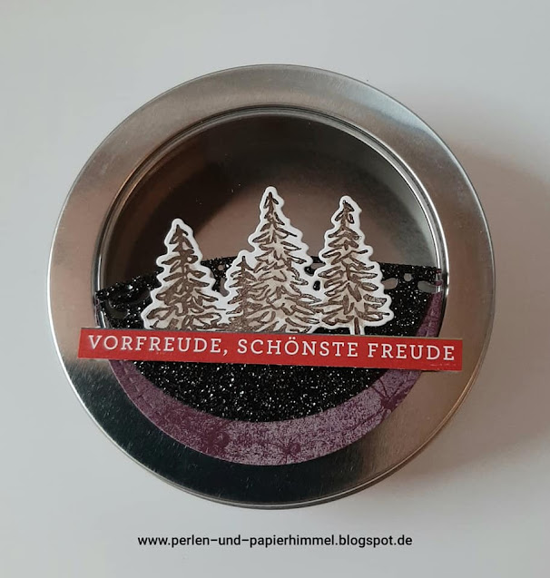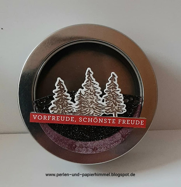 Ich habe diesmal eine Karte und eine verzierte runde Blechdose für euch: