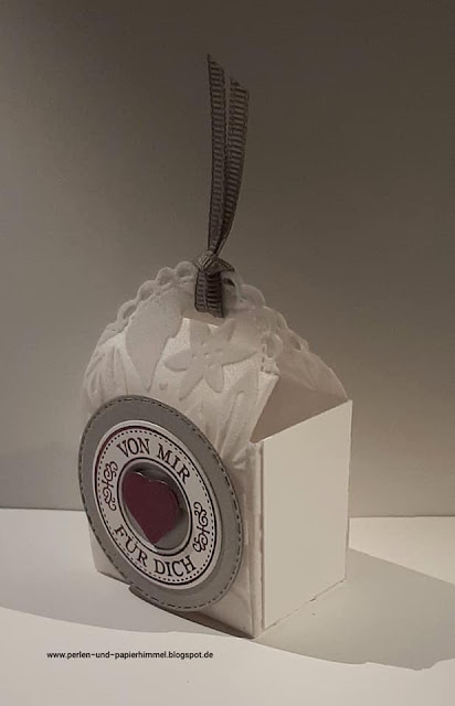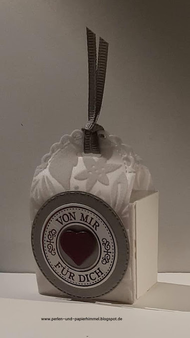Hier ist meine kleine Verpackung, gewerkelt mit der Stanzform „Mini-Geschenkschachtel“:
