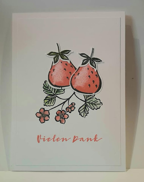Hallo Iris, das ist ja eine witzige Idee, die Erbeeren einfach auf den Kopf zu stellen. Somit hat SU nun auch Birnen im Sortiment ;-). Klasse. Vielen Dank für die Inspiration. Die Karte ist toll. LG, Martina