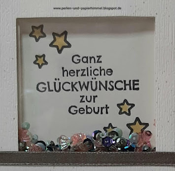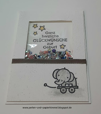 Ich habe eine Schüttelkarte zur Geburt gewerkelt mit dem Stempelset „Verspieltes zur Geburt“ aus dem