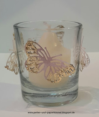 Ich habe ein kleines Teelichtglas mit unseren wunderschönen Schmetterlingen dekoriert.