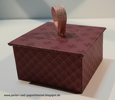 Ich habe wieder eine kleine Box aus Graupappe gebaut und diesmal versucht, mit 2 Bögen 6 Zoll Designpapier und etwas Cardstock auszukommen. Das scheint tatsächlich gelungen zu sein.
