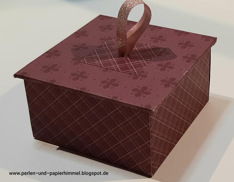 Ich habe wieder eine kleine Box aus Graupappe gebaut und diesmal versucht, mit 2 Bögen 6 Zoll Designpapier und etwas Cardstock auszukommen. Das scheint tatsächlich gelungen zu sein.