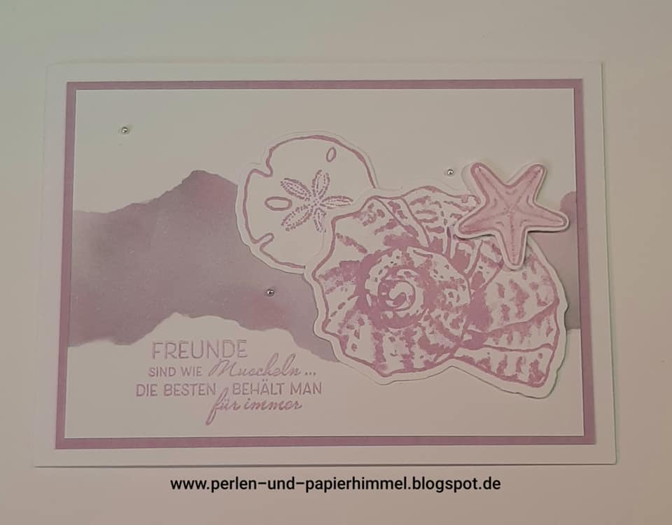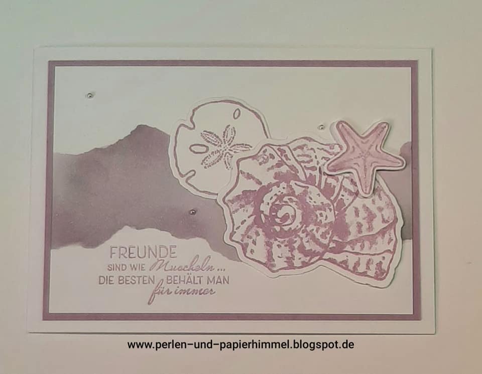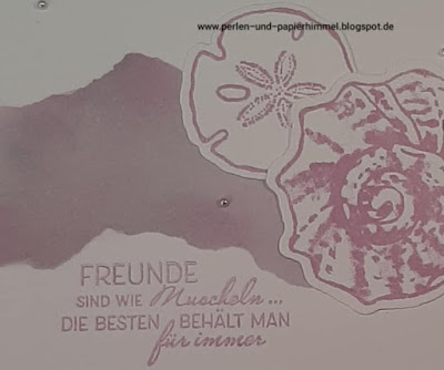 Mit dem Stempelset „Wie Muscheln“ und den Farben Freesienlila und etwas Seladon habe ich mich hier ausgetobt.
