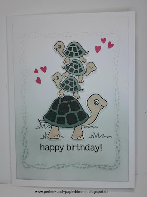 Ich habe für den heutigen Bloghop eine Geburtstagskarte für Joepee gebastelt, er liebt Schildkröten.