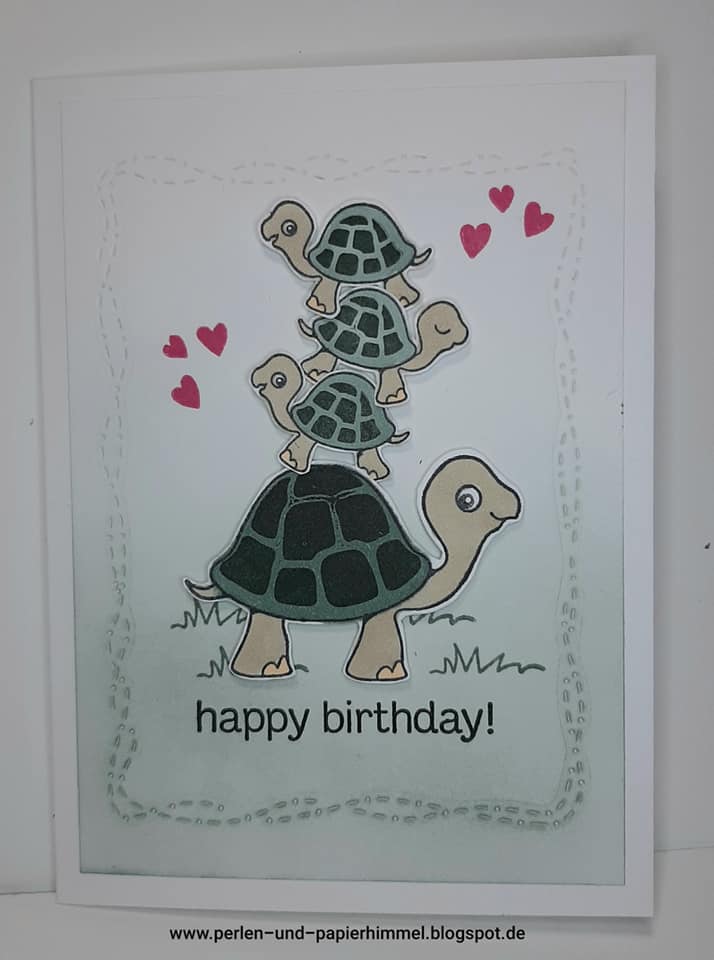 Ich habe für den heutigen Bloghop eine Geburtstagskarte für Joepee gebastelt, er liebt Schildkröten.