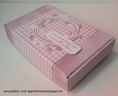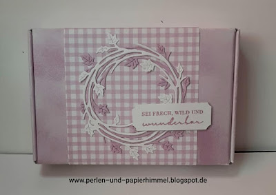 Ich habe eine Mini-Paperpumpkin Schachtel verziert in der Farbe Freesienlila und Grundweiss.