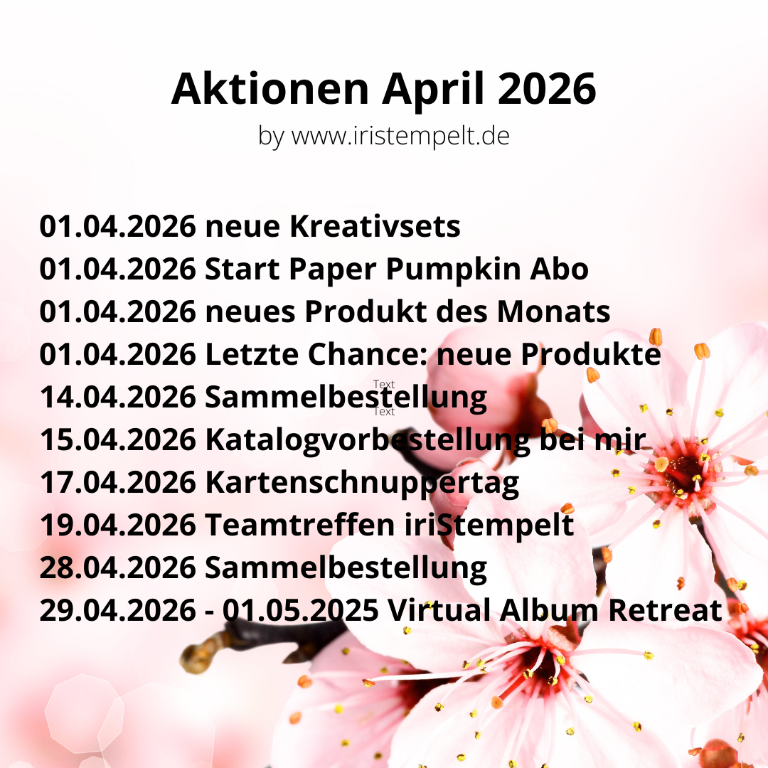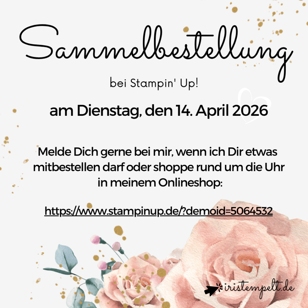 - Du möchtest auch Demonstrator:in werden und deine Bastelprodukte günstiger erwerben? Dann komm doch in mein kleines, aber feines Team „iriStempelt“! Weitere Informationen erhältst du direkt bei mir.